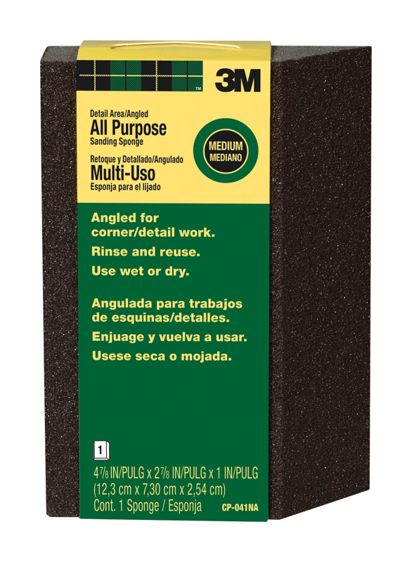 3M 4-7/8 in. L X 2-7/8 in. W X 1 in. 80 Grit Medium Angled Sanding Sponge