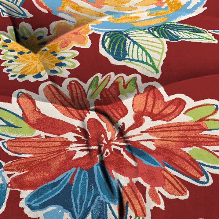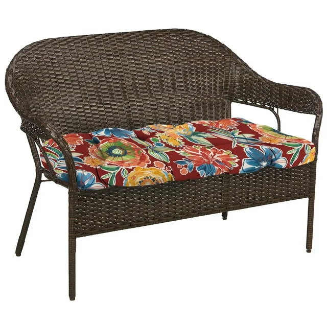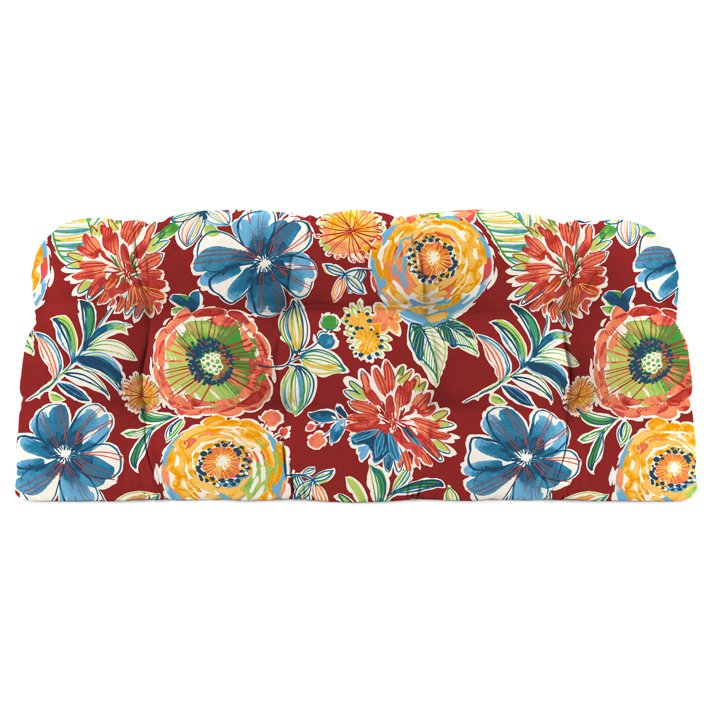 Jordan Manufacturing 44" x 18" Colsen Berry Red Floral Rectangular Tufted Contoured Outdoor Wicker Settee Bench Cushion