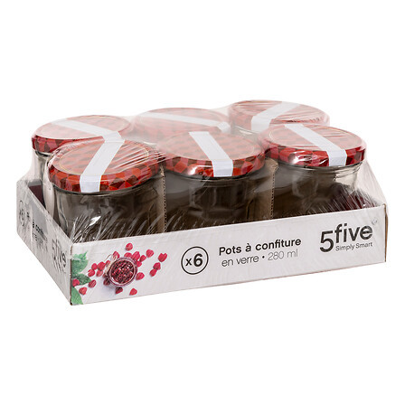 5five Simply Smart Set of 6 Glass Jam Jars, 280 ml