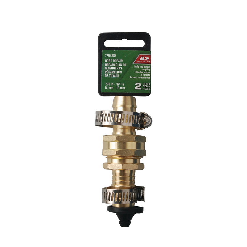 Ace Hose Mender 2Pk Male And Female Clamp 5/8In To 3/4In (15.9Mm To 19.1Mm) Coupling Brass