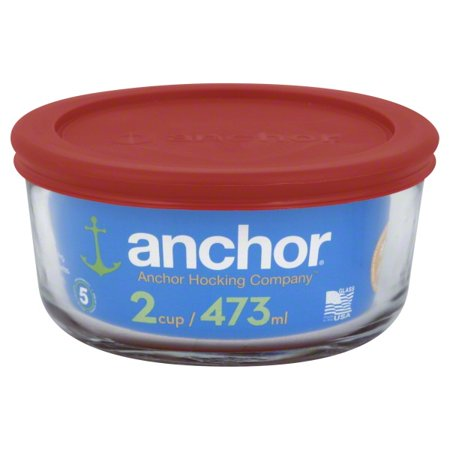 Anchor Hocking Round Food Storage w/ Lid, Clr/Red – 2 Cups