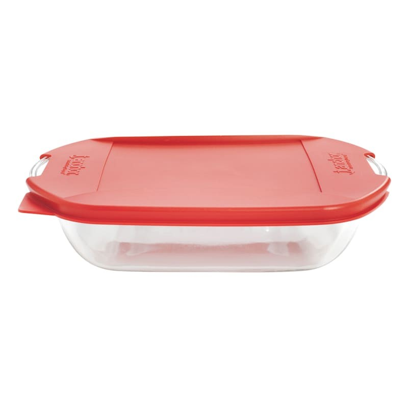 Anchor Hocking Square Cake Dish w/ Emb. Lid, Clr/Chry – 8 in
