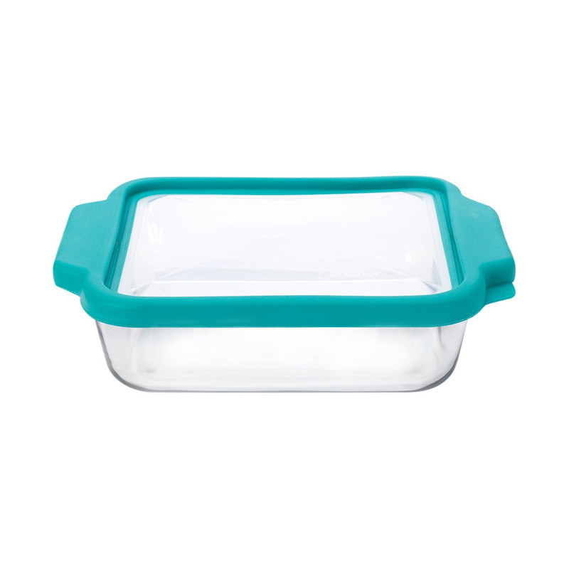 Anchor Hocking Square Cake Dish w/ Teal Emb. Lid, Clr – 8 in