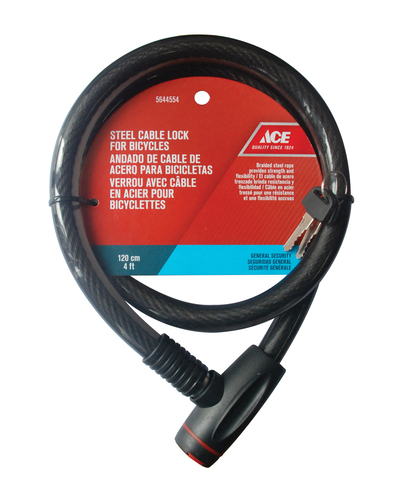 BICYCLE CABLE LOCK BLACK 120CM 4' STEEL