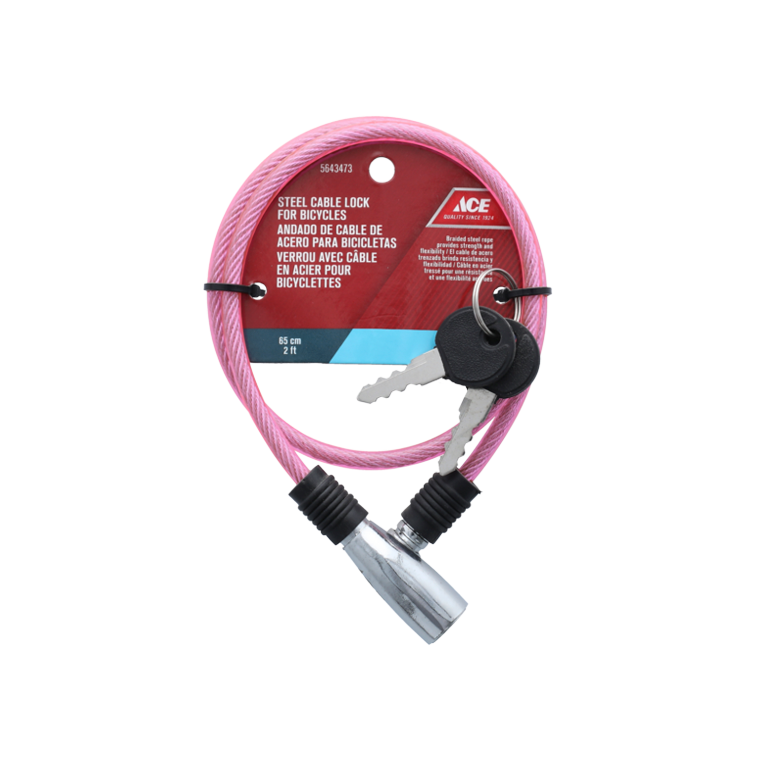 BICYCLE CABLE LOCK PINK 65CM (2FT) STEEL ACE