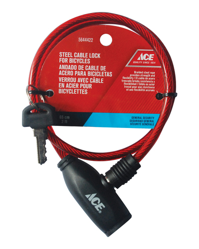 BICYCLE CABLE LOCK RED 65CM 12' STEEL