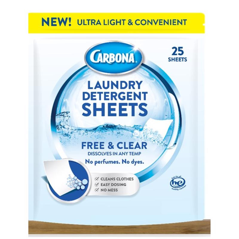 Carbona Free & Clear Scent Laundry Detergent Sheets 25 pk