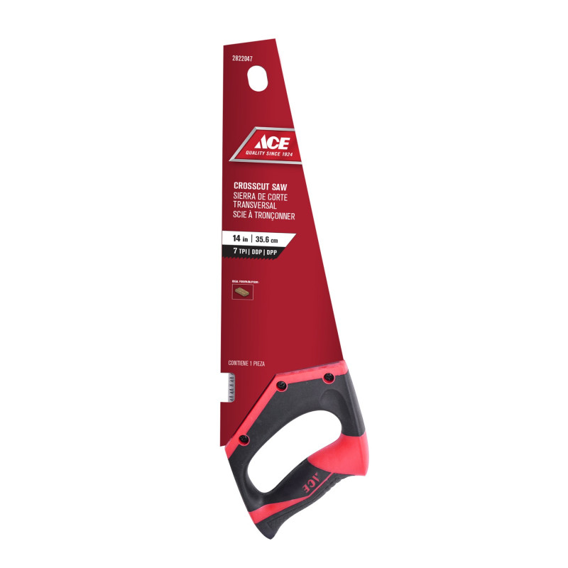 The ACE Crosscut Saw, 356 mm (14 in) with 7 TPI (teeth per inch), features a durable TPR (thermoplastic rubber) grip designed for comfort, precision, and controlled cutting of wood and soft materials. This versatile saw is ideal for woodworking, carpentry, DIY projects, and general home repairs, providing accurate and smooth crosscutting performance.
