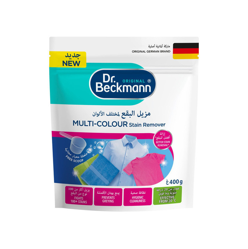 The Dr. Beckmann Multi-Colour Stain Remover 400g effectively removes tough stains while protecting the brightness of colored fabrics. Its advanced formula works on a wide range of stains, helping keep clothes vibrant without fading. Suitable for everyday laundry, it delivers reliable stain removal with fabric-friendly care.