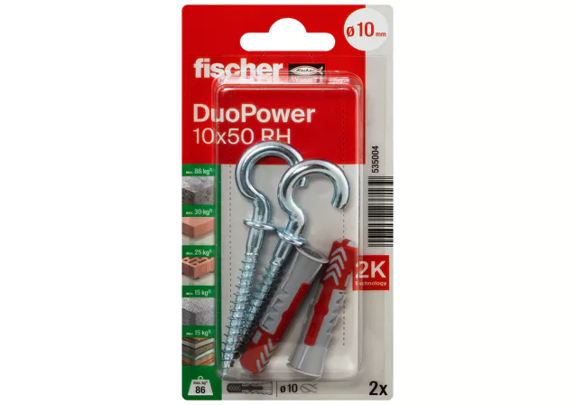 Fischer DUOPOWER 10x50 RH G N KNV Plug + Round Hook 2pcs