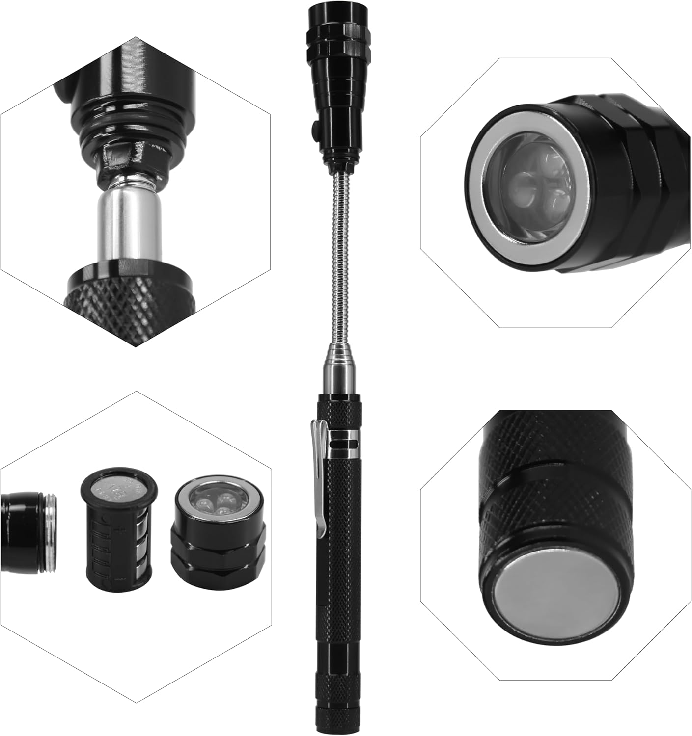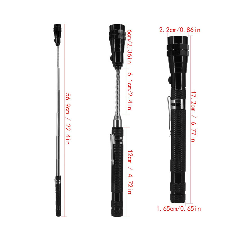 The Extendable Magnetic LED Flashlight is a practical and versatile tool designed for convenience in hard-to-reach areas. Featuring a bright LED light, it provides clear illumination for automotive repairs, workshops, home maintenance, and emergency use. The extendable telescopic body allows you to reach tight or narrow spaces with ease, while the strong magnetic tip securely picks up small metal objects like screws, nuts, and bolts. Lightweight and easy to handle, this flashlight is an essential addition to any toolbox, offering both powerful lighting and magnetic retrieval in one compact design.