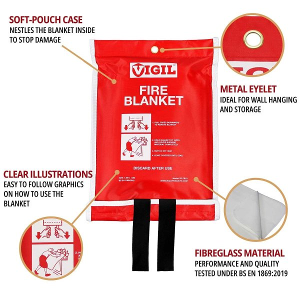 All Vigil fire blankets are manufactured from a high-quality coated glass fibre material and are performance and quality tested in accordance with BS EN 1869:2019 by SGS Group, the world's leading testing, inspection and certification company. We believe our materials create one of the most effective fire blankets on the market. Plus, the 5-year warranty gives you peace of mind for years.