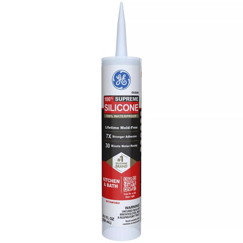 GE Supreme Clear Silicone Kitchen and Bath Caulk Sealant 10.1 oz