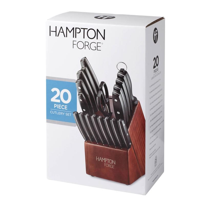 Hampton Forge Atlantis Stainless Steel Kitchen Cutlery Set, Wood Block, 20 pc