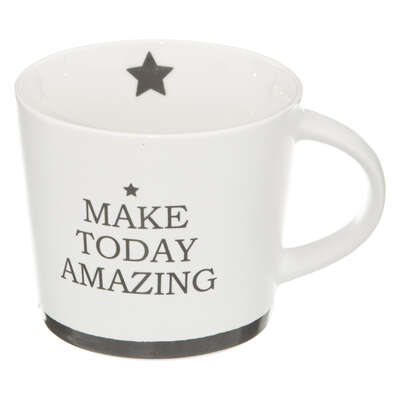 Secret de Gourmet Happy Text 3-Piece Ceramic Mug Set, White, 32 cl / 11 oz