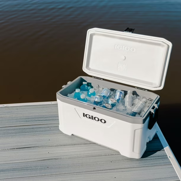 The Igloo Marine Cooler 54 Qt. in white is built for durability and reliable cooling performance, making it ideal for boating, fishing trips, beach days, and outdoor gatherings. Designed with marine-grade construction, it resists sun exposure and harsh environments while keeping beverages and food ice-cold for extended periods. The spacious 54-quart capacity provides ample room for drinks, snacks, and ice, while sturdy swing-up handles ensure easy carrying and transport. Its UV-protected exterior helps prevent fading and cracking, and the smooth, easy-to-clean surface adds convenience after use. Whether you're out on the water or enjoying the outdoors, this cooler delivers dependable chilling power with rugged style and practical functionality.
