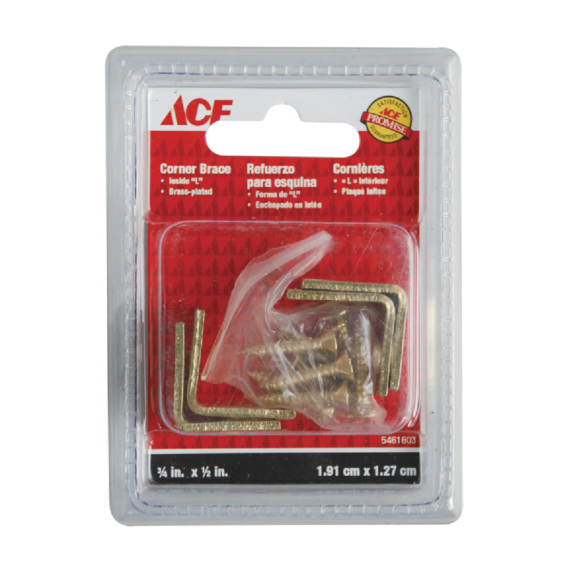 Inside L Corner Brace 3/4In X 1/2In (1.91Cm X 1.27Cm) Bright Brass Ace