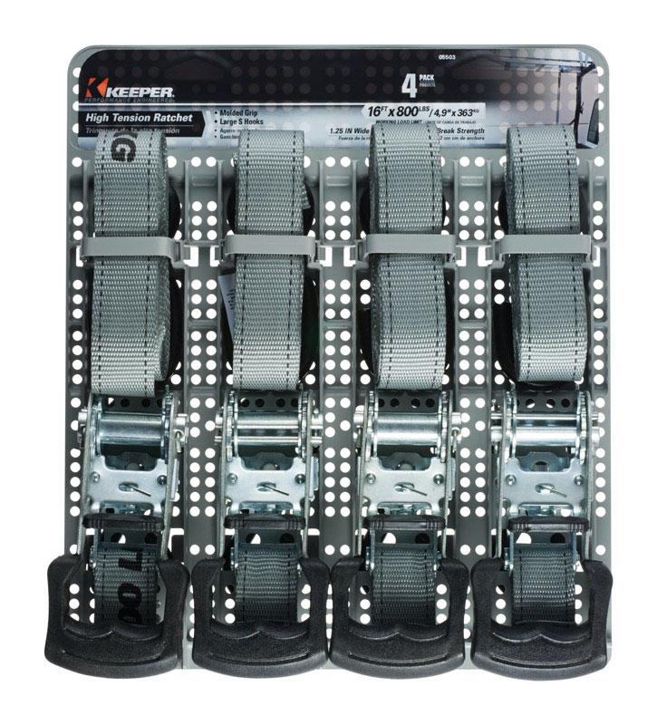 Keeper 1.25 In. W X 14 Ft. L Gray Tie Down W/Ratchet 800 Lb. 1 Pk