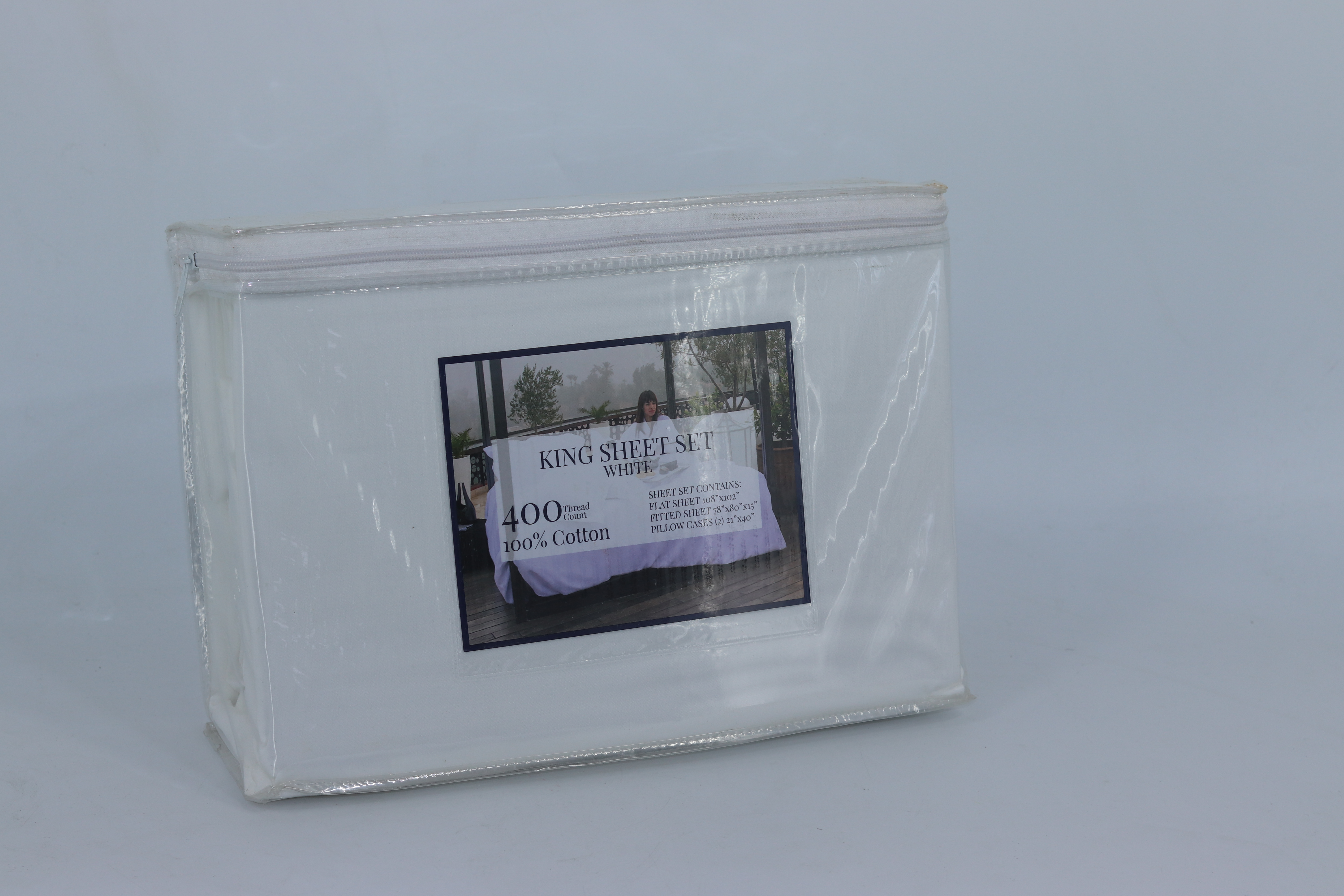 King Sheet 4 Pcs Set White 400 Tc,100% Cotton,Flat108"X 102",Fitted78"X80"X15",Two Pillow Cases 21"