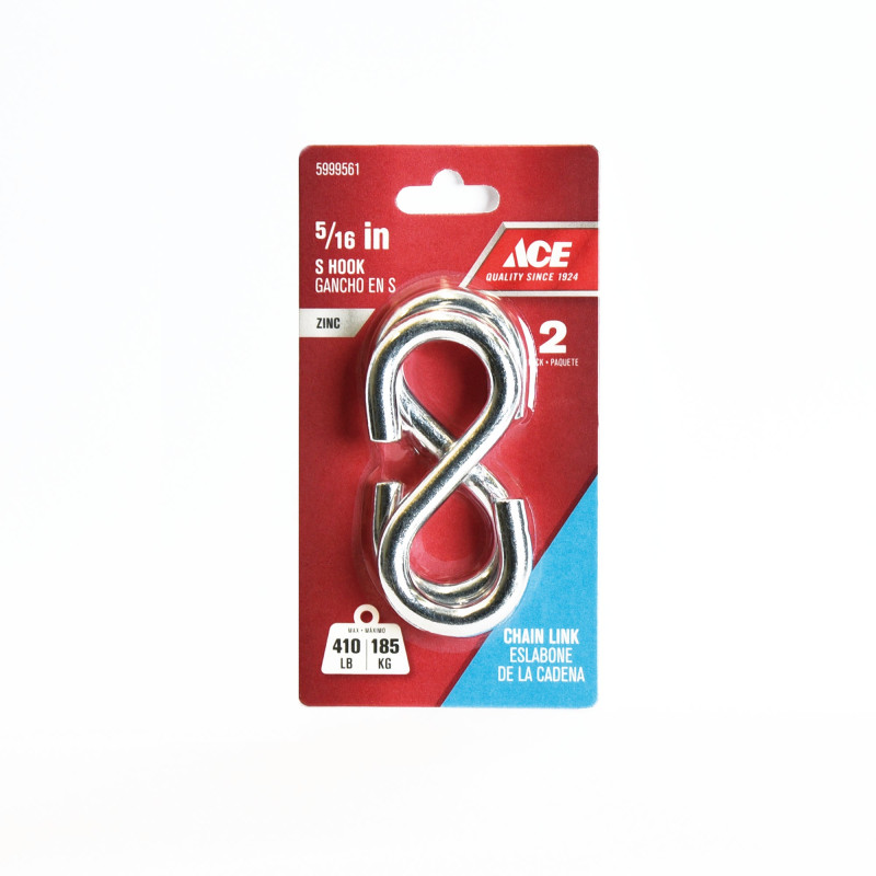 Ace S-Hook 5/16In (0.79Cm) Zinc 2 Pack