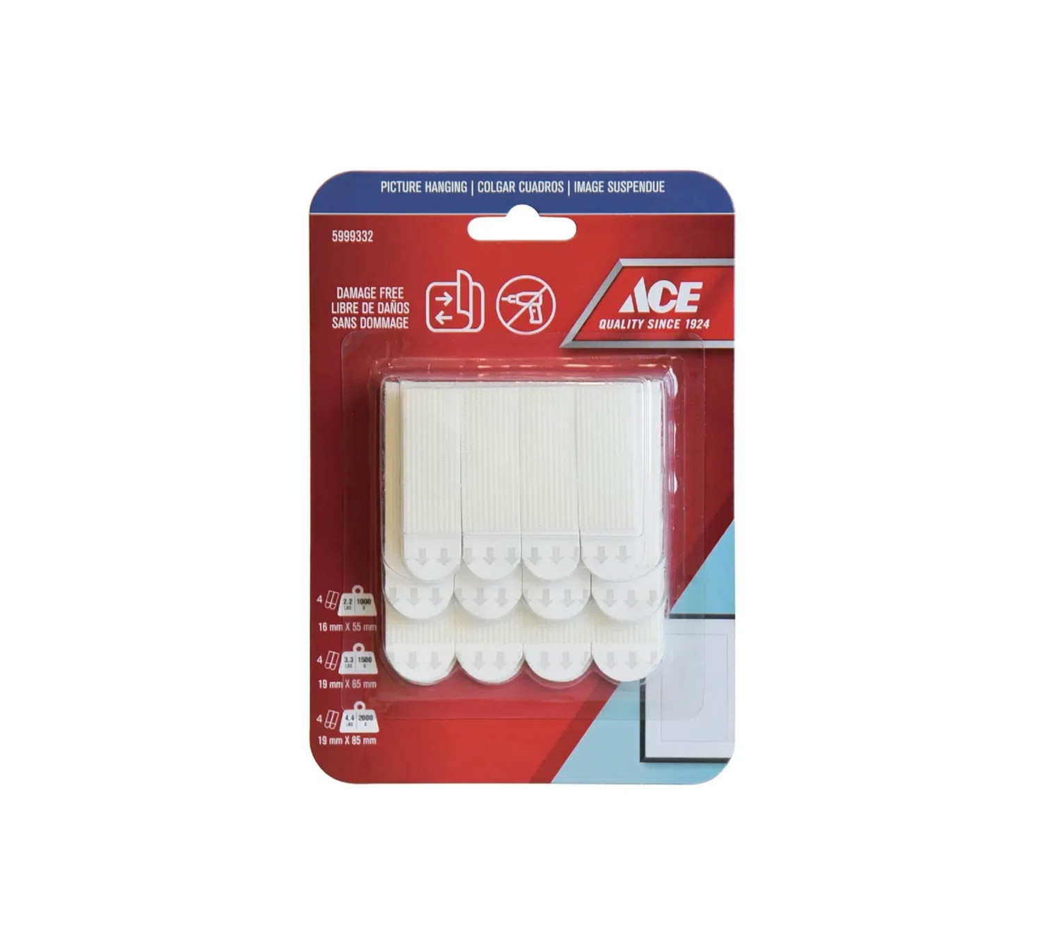 ACE Removable Picture Strips, 12-Pack, 5kg (11 lbs) Capacity, White