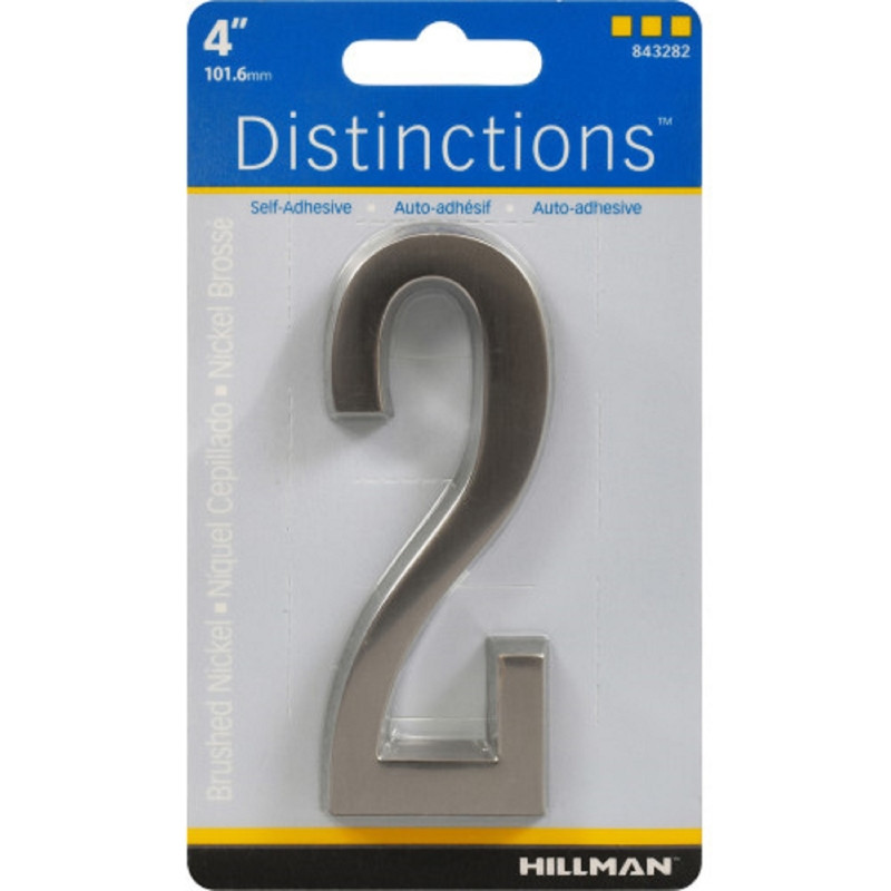 Hillman Distinctions 4 in. Silver Zinc Die-Cast Self-Adhesive Number 2, 1 pc