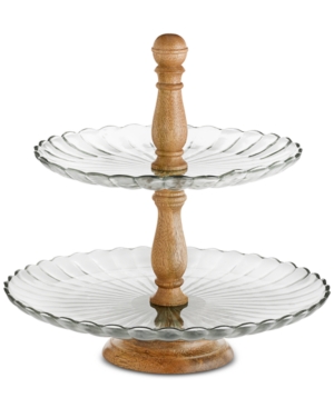Martha Stewart Collection Glass Wood 2-Tier Server No Color