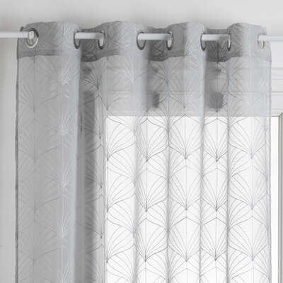 Atmosphera Mia Embroidered Sheer Curtain, Grey, 140 x 240 cm