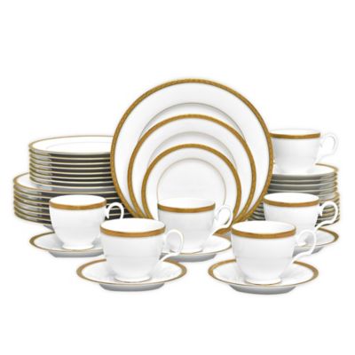 Noritake Charlotta Gold 60 Pc Dinnerwar Whitegold