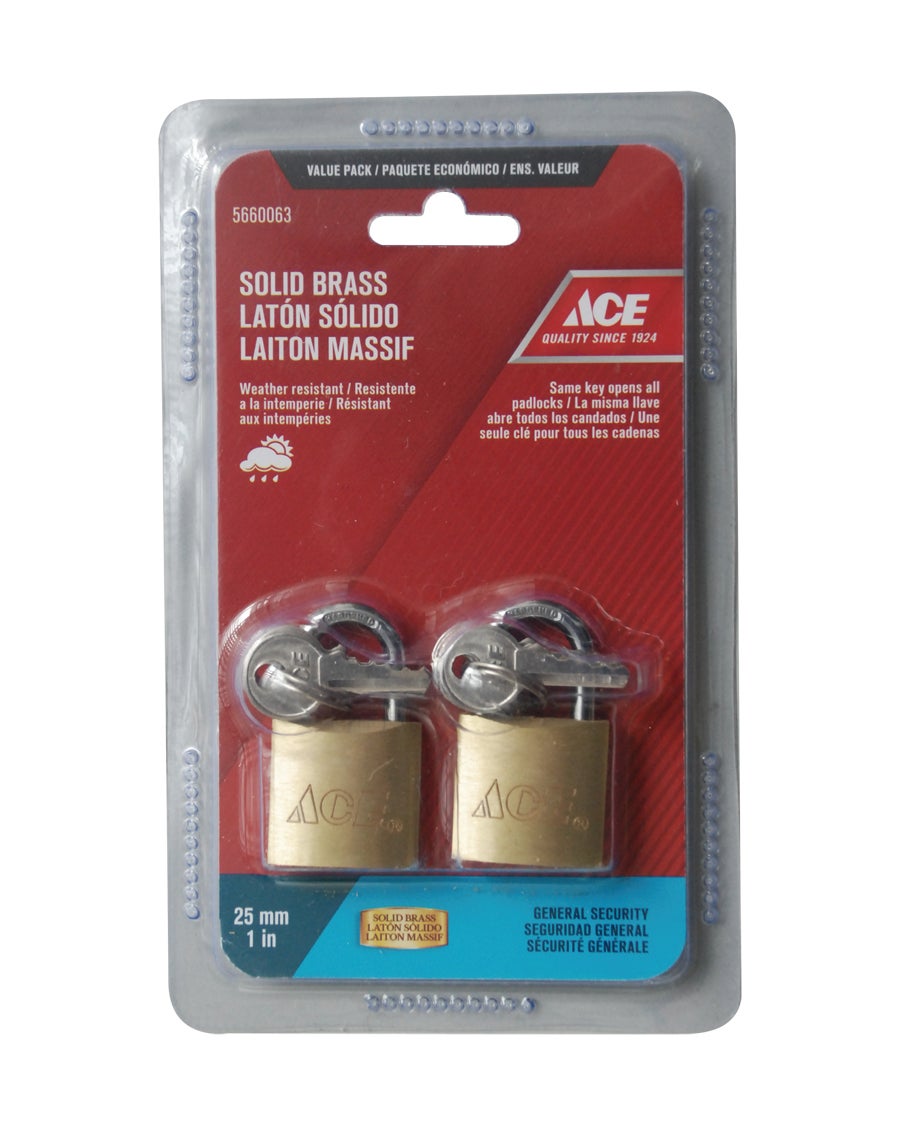 PADLOCK 2 PACK 25MM (1IN SOLID BRASS ACE )