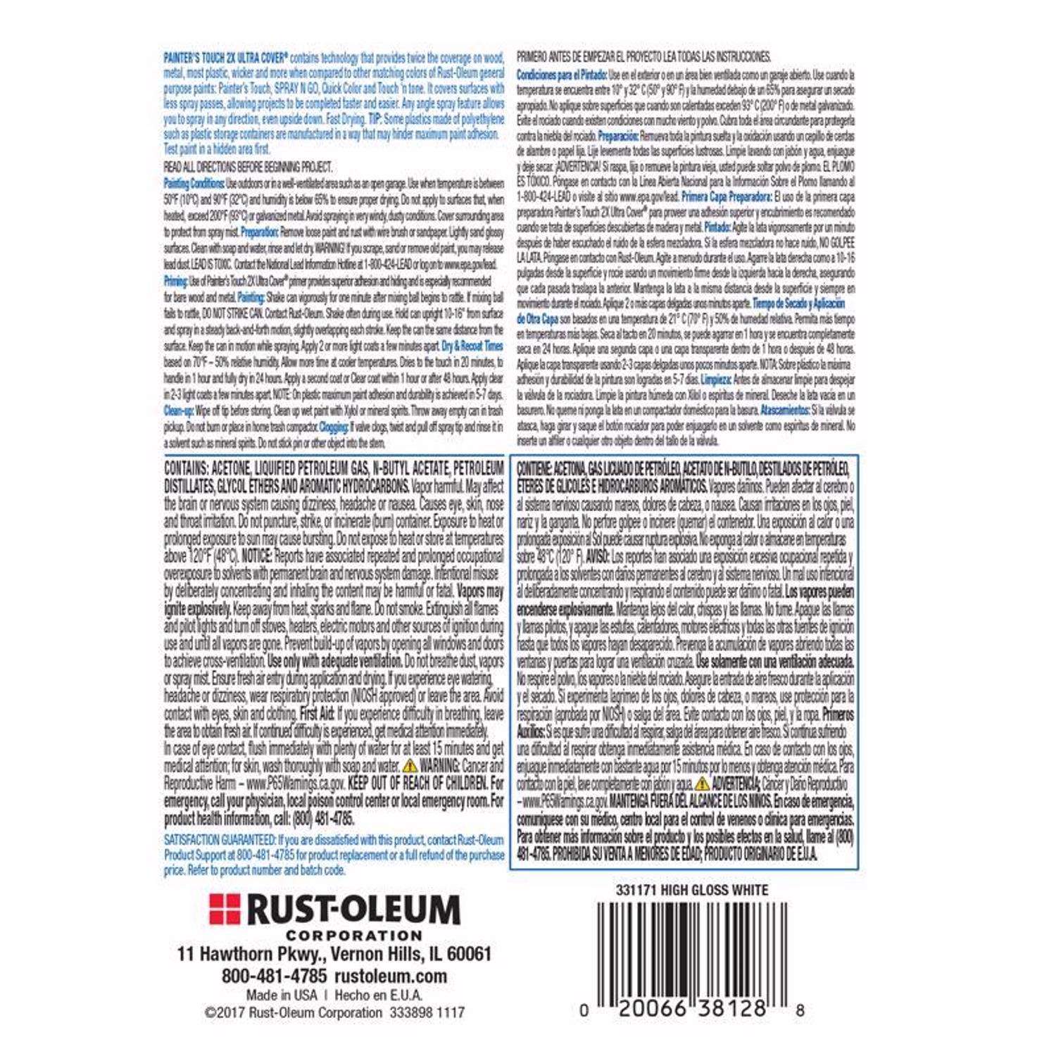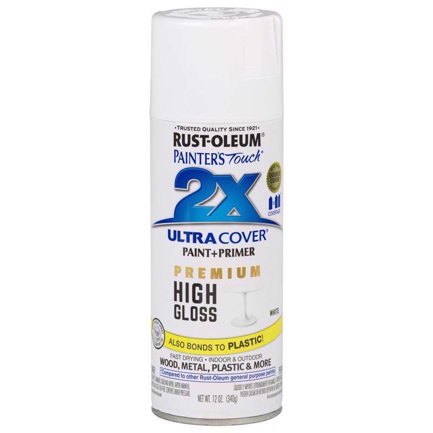 Rust-Oleum Painter'S Touch 2X Ultra Cover High-Gloss White Paint+Primer Spray Paint 12 Oz