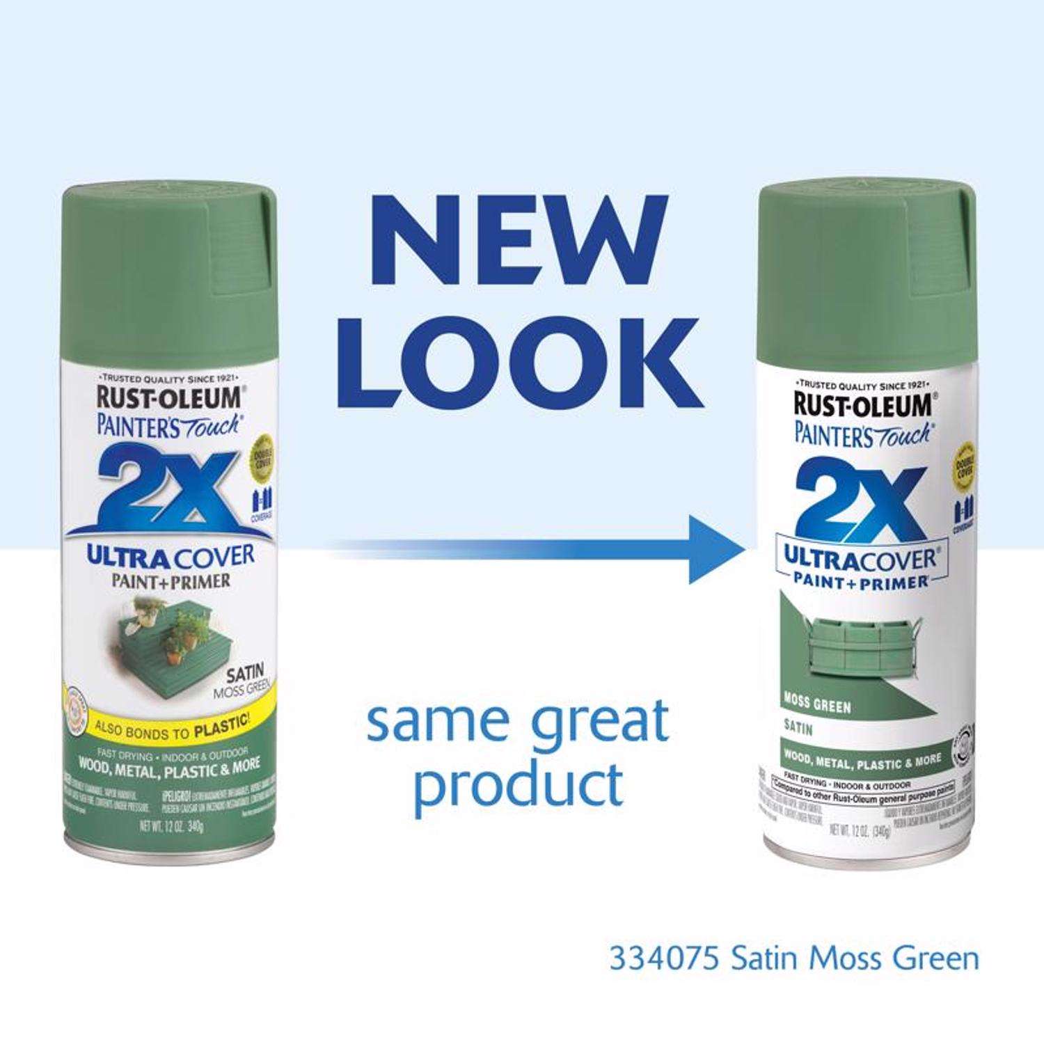 Rust-Oleum Painter'S Touch 2X Ultra Cover Satin Moss Green Paint+Primer Spray Paint 12 Oz