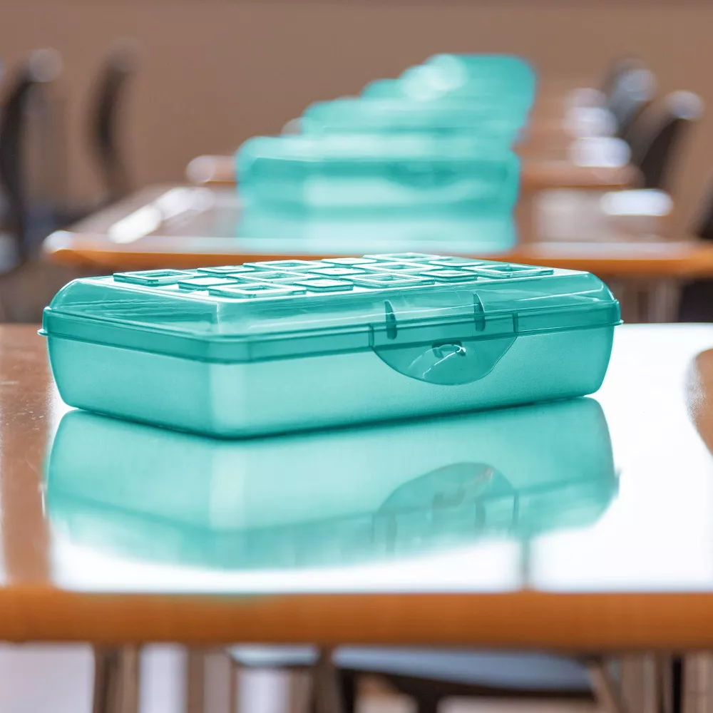 School Boxes Offer A Great On-The-Go Storage Option For Arts And Crafts, School, Office, Accessories, And Workshop Supplies. The Sterilite Small Pencil Box Is Conveniently-Sized To Help Students And Teachers Organize And Transport Pencils, Crayons And A Variety Of Other School And Office Supplies. The Compact Design Fits Easily In A Backpack, Desk Or Locker, While The Snap Close Lid Ensures Items Stay Neatly Contained. The Size And Shape Allow This Pencil Box To Be A Versatile Storage Solution. Store Away Or Transport Travel Size Items, Beauty Products, First Aid Items, Hair Accessories, Jewelry, Sewing And Craft Supplies, And More! The Overall Assembled Dimensions Of This Item Are 8 3/8" L X 5 5/8" W X 2 1/8" H.