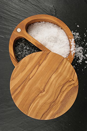 Swissmar Palermo Dual Bin Olive Wood Salt Keeper With Magnetic Swivel Lid