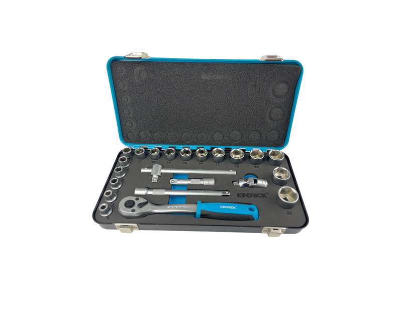 16 Pc 1/2" Drive Metric Set , Socket Set Metal Box