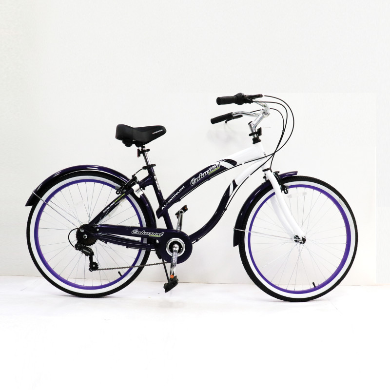 Cruise down the beach, to the store, or to your local coffee shop in style on this great looking bicycle. The Kent Oakwood 26" Cruiser Bike features an attractive aluminum frame with front and rear fenders as well as an enclosed chain cover. Unlike other single-speed cruisers, this bike has a 7-speed handle gear shift to help you get up those tough hills. With a quick-release seat post clamp, front and rear caliper brakes, Shimano rear derailleur, and soft saddle seat, you'll have a ride that's fun, smooth, and safe. Lightweight and sturdy deluxe aluminum frame Alloy stem Comfort saddle 36-spoke alloy rims Front and rear fenders protect the rider from dirt and debris Enclosed chain cover protects the rider and their clothing 7-speed twist shifters Shimano rear derailleur Front and rear caliper brakes ensure steady stopping power Quick-release seat post clamp Overall: 27"H x 51.8"L x 7.5"W Weight: 40 lbs.