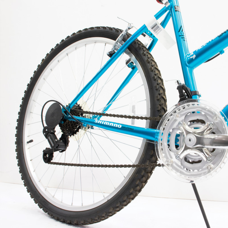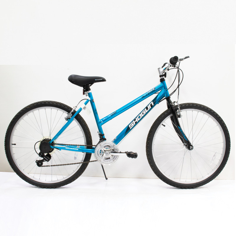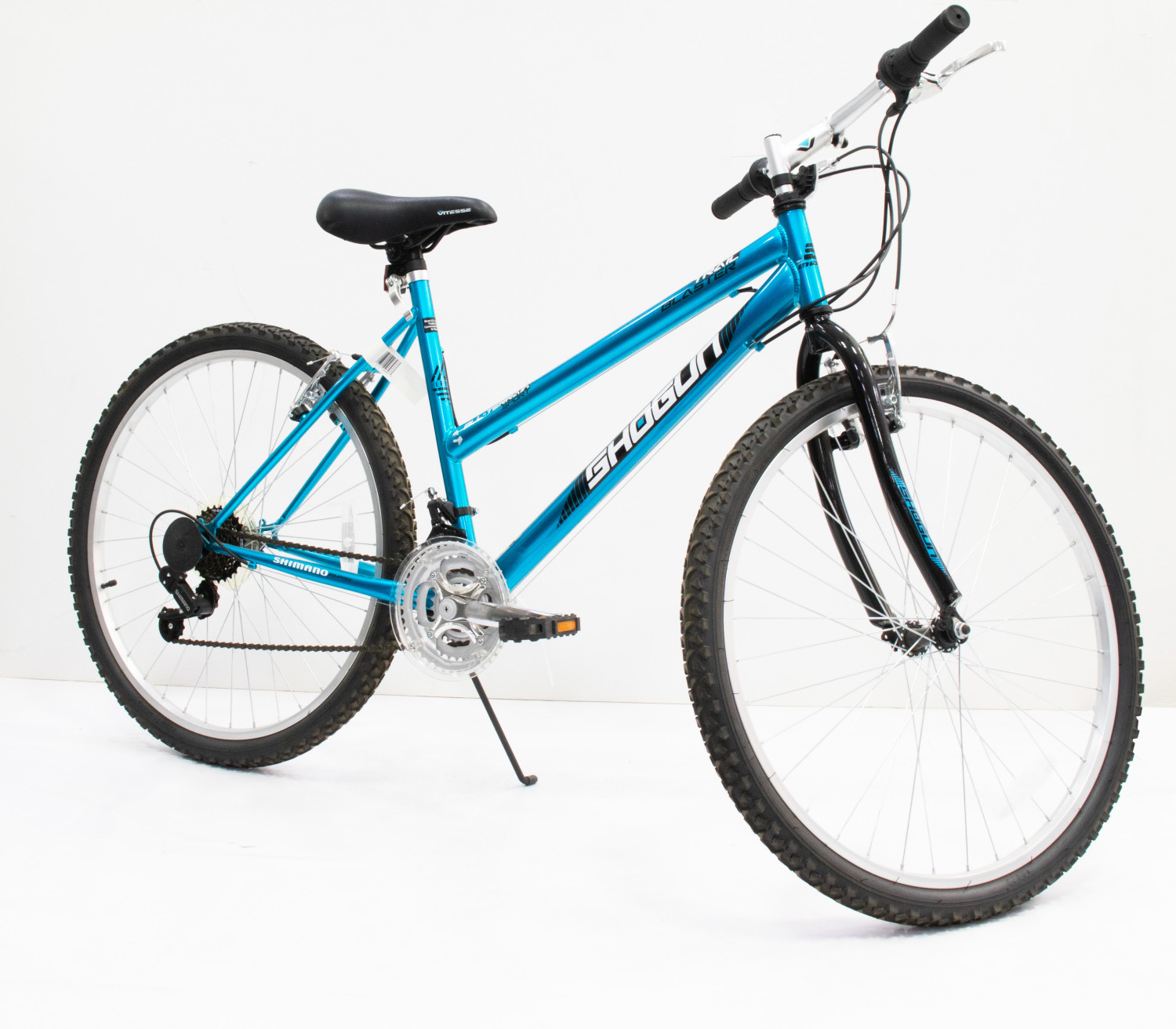 This bike is designed for adventure, with a durable tig-welded steel hardtail frame that can handle your neighborhood trails. The hi-tensile steel fork provides additional strength and stability, while the 18-speed drivetrain with twist shifters lets you effortlessly shift gears on the fly. Take on nearly any terrain with confidence, thanks to the knobby mountain bike tires and lightweight alloy wheels. The height-adjustable saddle and stem make it easy to find your perfect riding position, and the glossy blue paint finish gives the bike a sleek and stylish look. Get ready to tackle the trails with the 26" Shogun Trail Blaster mountain bike.
