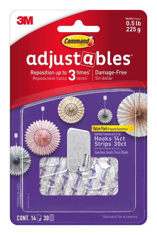 3M Command Adjustables Small Brushed Clear Plastic 1.03 In. L Hook 0.5 Lb. 14 Pk