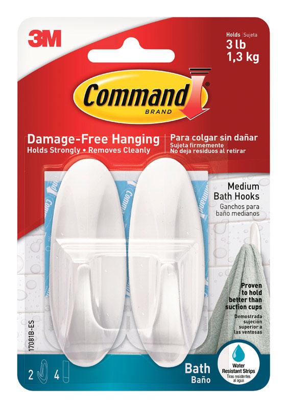 3M Command Medium Plastic Hook 3-1/8 In. L 2 Pk