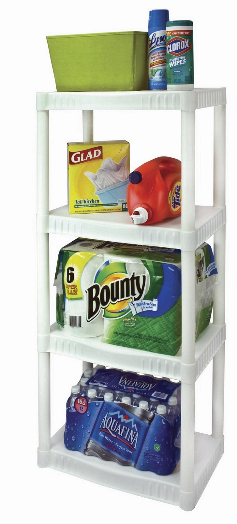 Freestanding Plastic Shelving, Open Style, 14 in D, 22 in W, 48 in H, 4 Shelves, Black