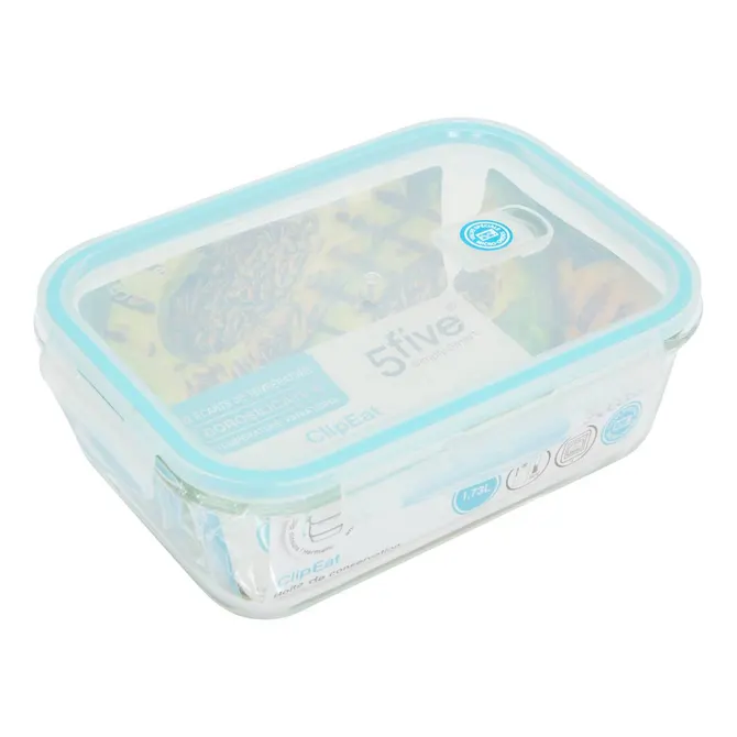 5five Simply Smart ClipEat Rectangular Glass Storage Container, Blue, 1.73 L