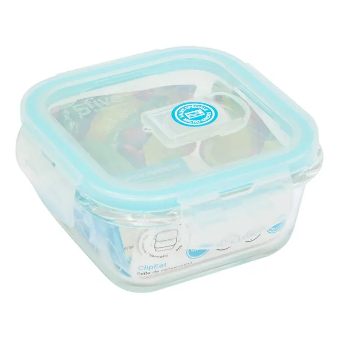 5five Simply Smart ClipEat Square Glass Storage Container, Blue, 0.33 L
