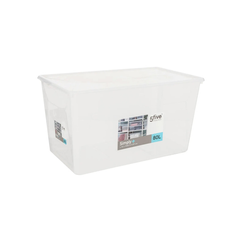 5five Simply+ Plastic Storage Box, Transparent, 80 L