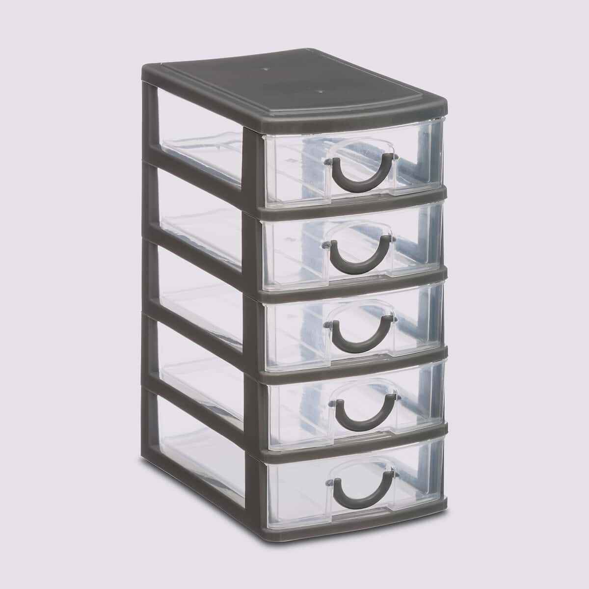 5five Tide'n'Small 5-Drawer Plastic Storage Unit,Grey,Large