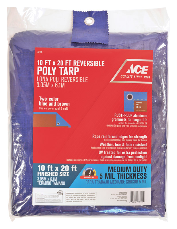 Ace 10 Ft. W X 20 Ft. L Medium Duty Polyethylene Tarp Blue/Brown
