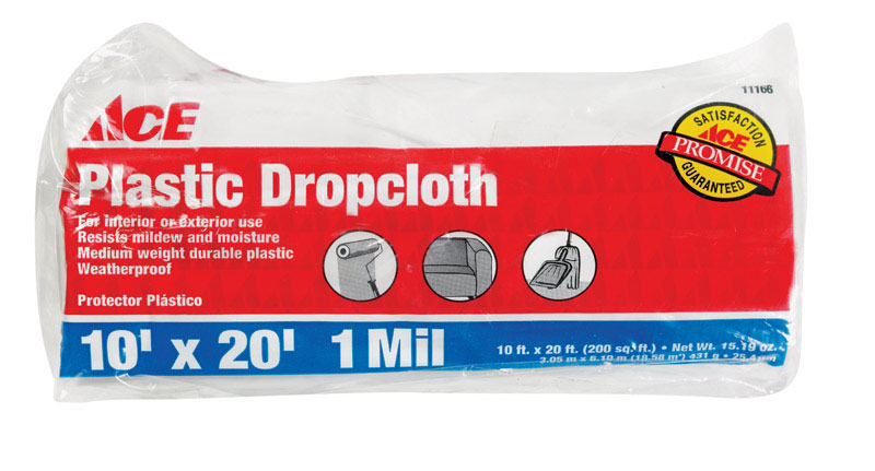 Ace 10 ft. W X 20 ft. L X 1 mil Plastic Drop Cloth 1 pk
