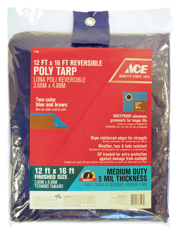 Ace 12 Ft. W X 16 Ft. L Medium Duty Polyethylene Tarp Blue/Brown