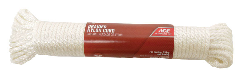Ace 3/16 In. Dia. X 50 Ft. L White Solid Braided Nylon Rope