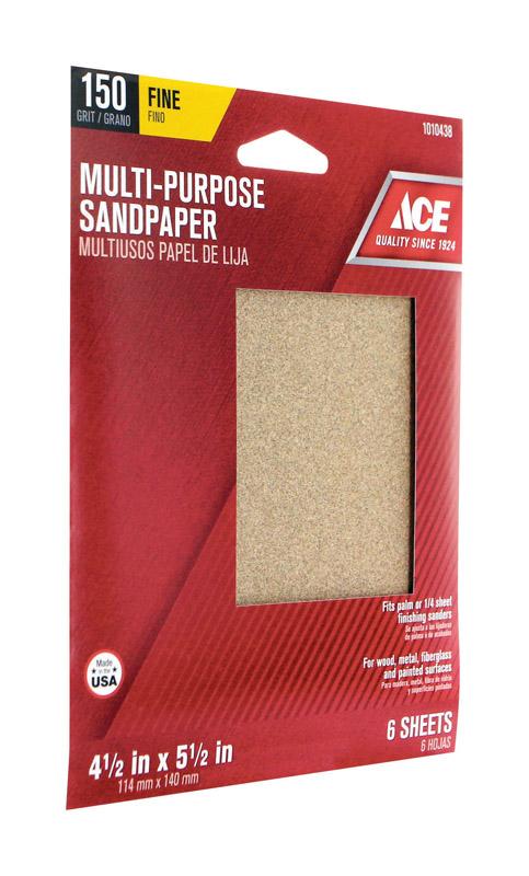 Ace 5-1/2 In. L X 4-1/2 In. W 150 Grit Aluminum Oxide 1/4 Sheet Sandpaper 6 Pk