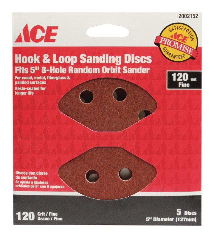 Ace 5 In. Aluminum Oxide Hook And Loop Sanding Disc 120 Grit Fine 5 Pk